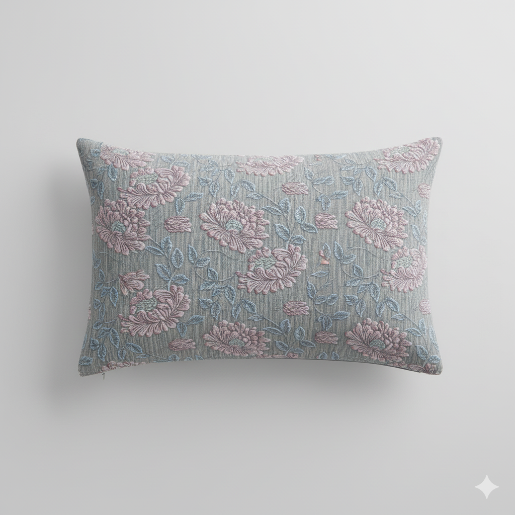 210 TC Cotton Double Bedsheet with 2 Pillow Covers – Beige & Grey Floral Design (108 x 108 Inches)