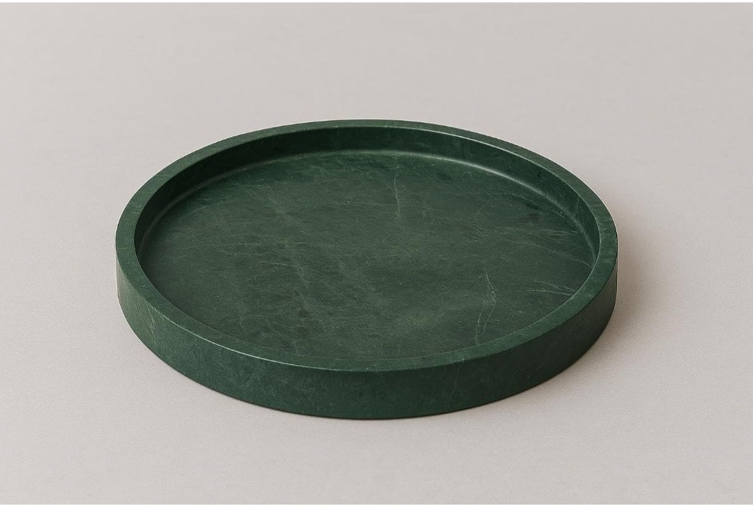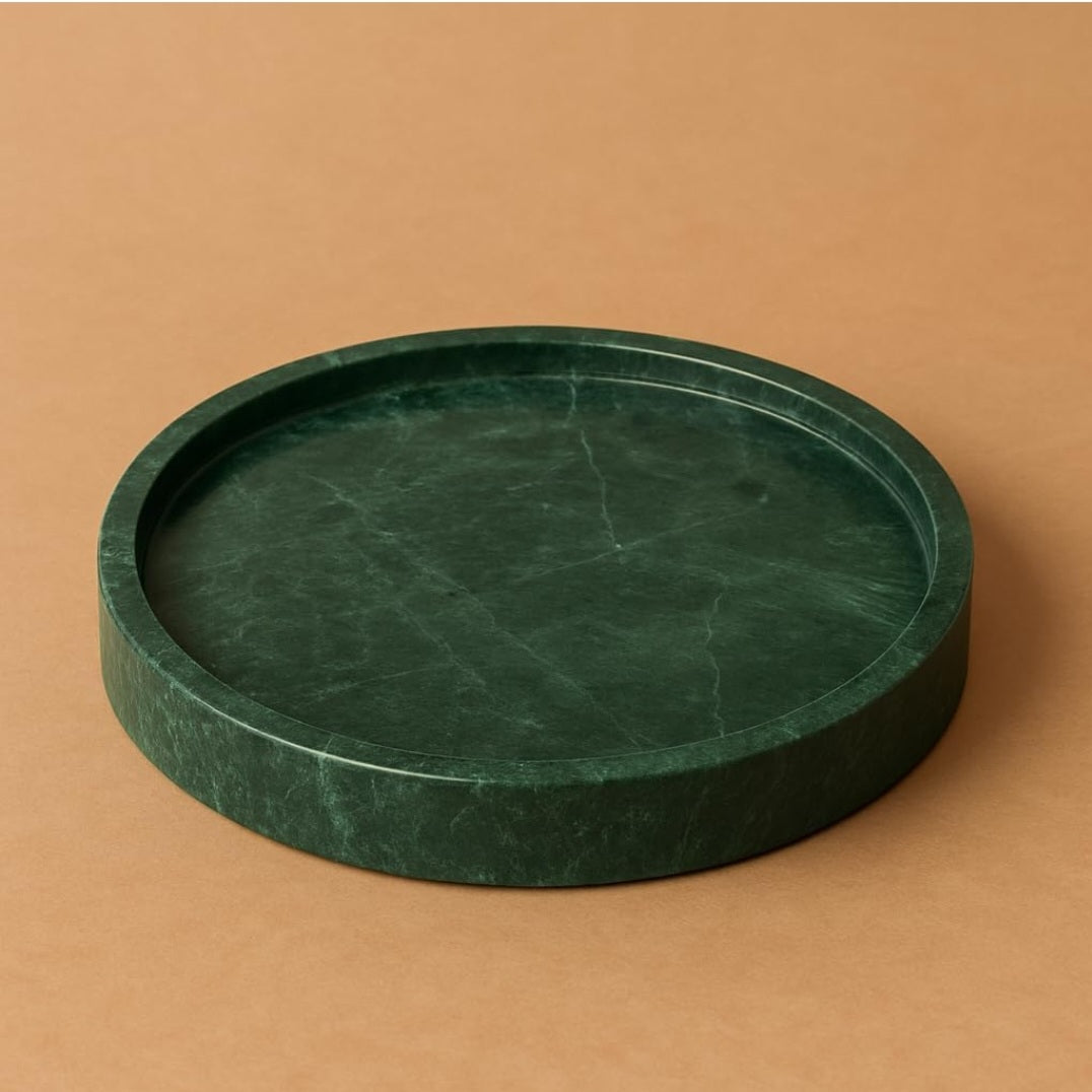 Colour: Forest GreenMaterial: MarbleProduct Dimensions:25L x 25W x 3H CentimetersShape: RoundTray Type: Decorative Tray