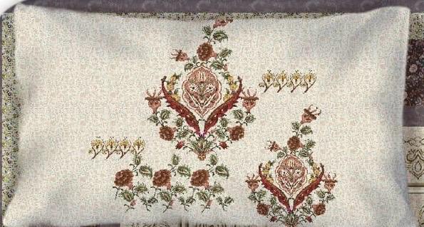 This bedsheet features an ivory cream base beautifully enriched with intricate floral & ornamental motifs in shades of maroon, olive green, muted gold, and soft brown, bordered with an elegant deep chocolate-brown floral frame.