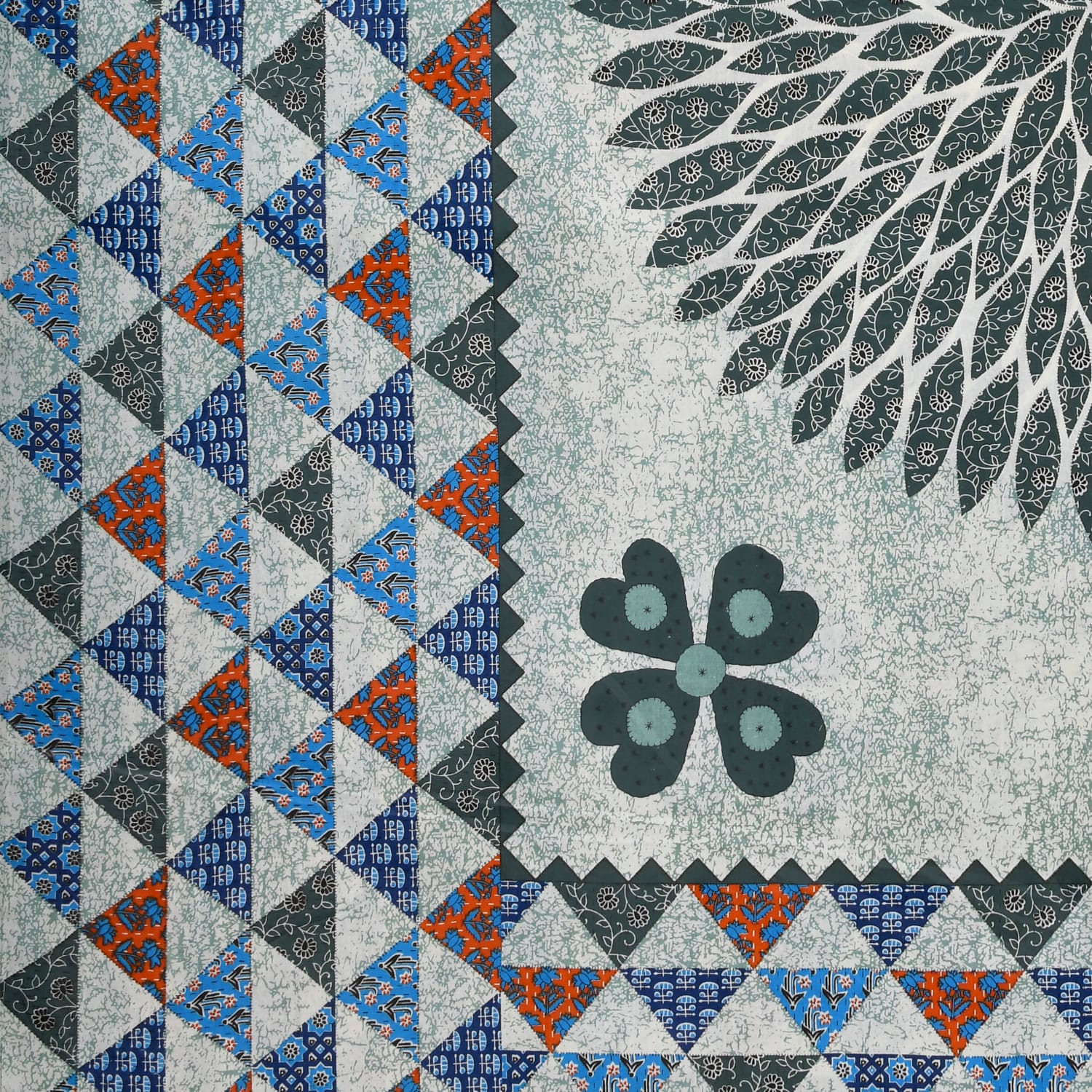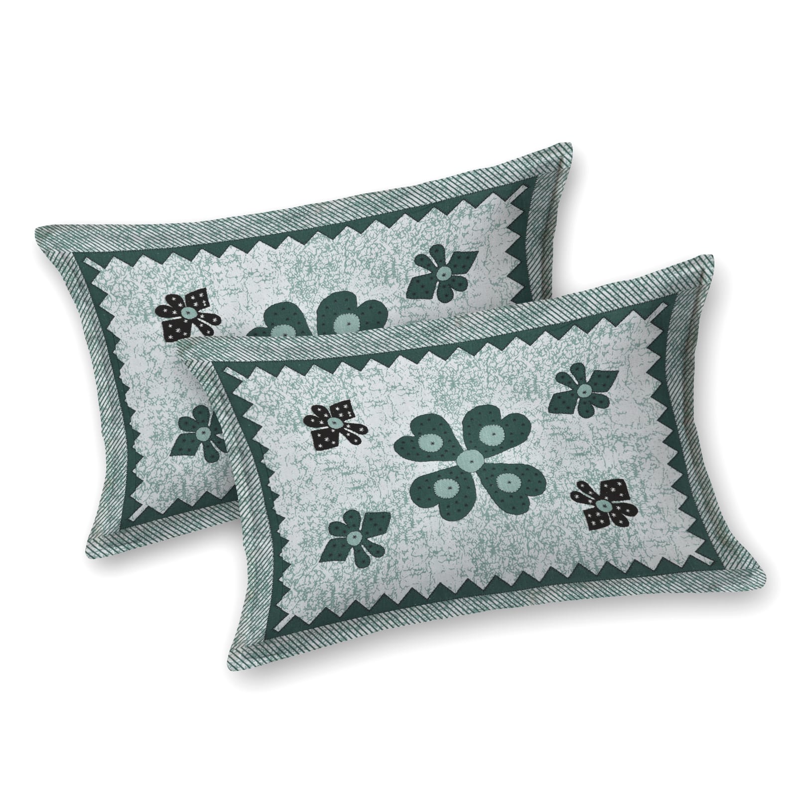 Handblock Print Double Bedsheet with Pillow Covers – 210 TC, Green & Blue Floral Mandala Design