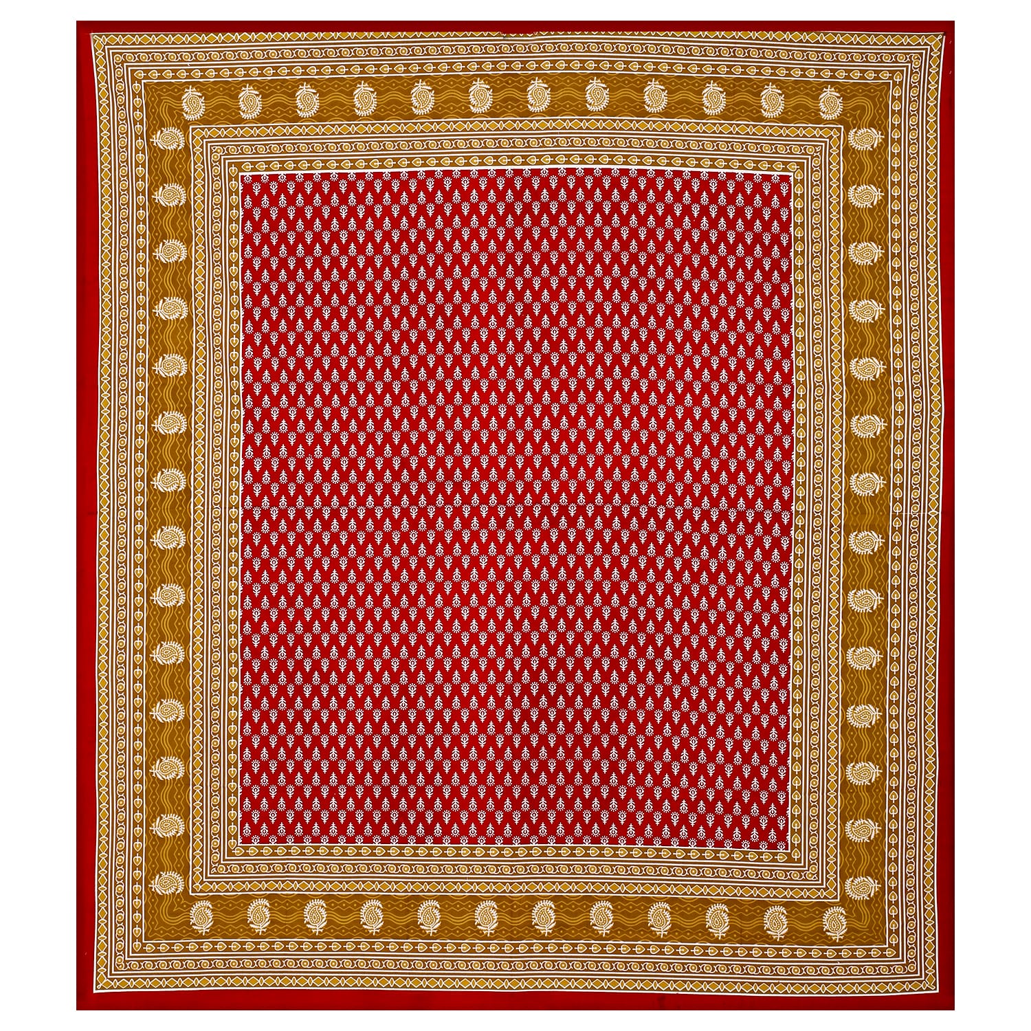 Add a touch of traditional elegance to your bedroom with this premium Jaipuri Cotton Double Bedsheet. Crafted with 210 thread count cotton fabric, it offers a soft, breathable, and durable texture for everyday comfort. Featuring a vibrant red and beige floral print with ethnic border design, this bedsheet brings a royal charm to your space. Perfect for double beds, it comes with 2 matching pillow covers for a complete look.