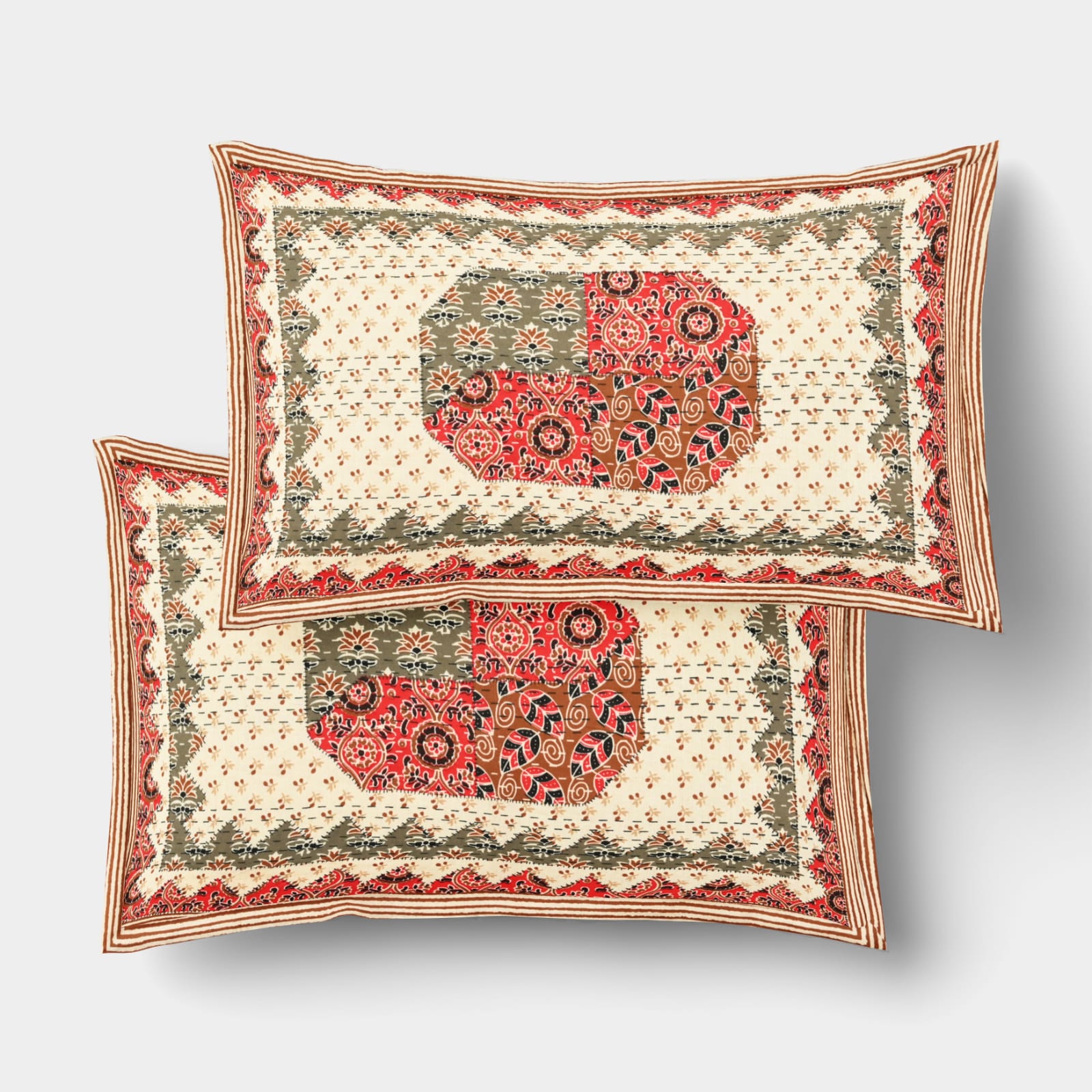 Add a touch of traditional elegance to your bedroom with this multicolor patchwork-style double bedsheet set. Featuring a vibrant mix of earthy tones, geometric patterns, and floral-inspired motifs, it blends heritage charm with modern comfort. Crafted with a 210 thread count fabric, it offers a smooth, soft texture and excellent durability. The coordinated pillow covers with block-print inspired motifs complete the stylish look.