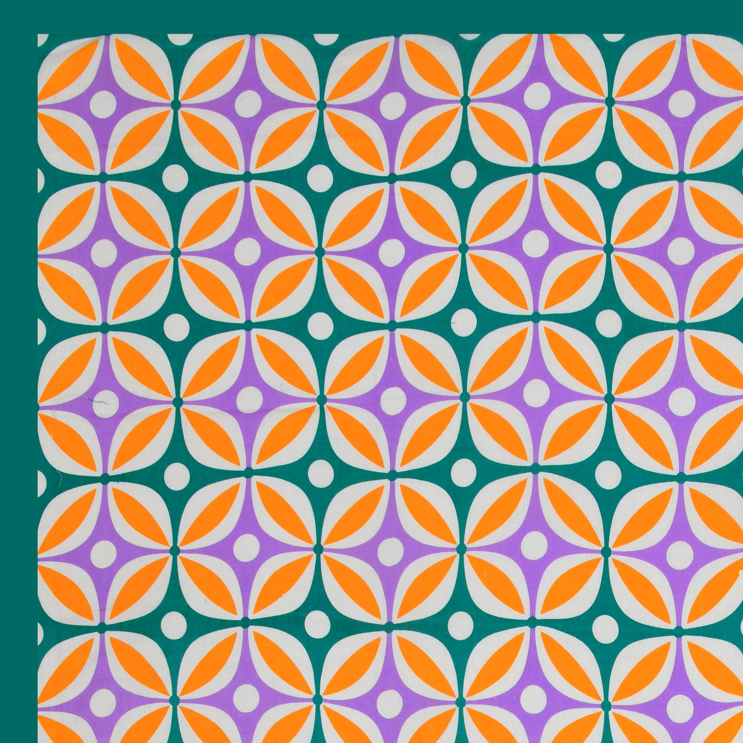 Premium 210 TC Double Bedsheet with Pillow Covers – Orange & Purple Geometric Floral Print