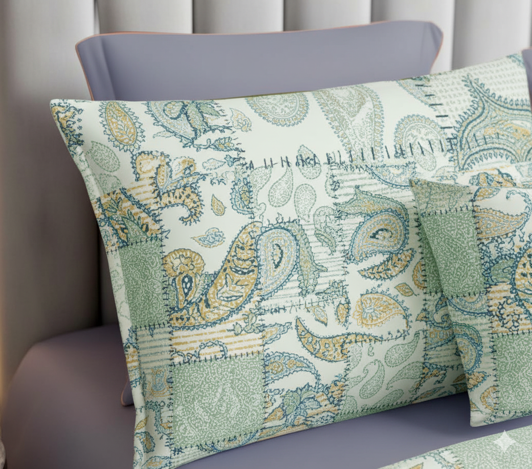 Give your bedroom a modern upgrade with this Premium Cotton Bedsheet Set, featuring a stylish diamond check pattern in soothing shades of mint green, grey, and white. The contemporary design blends effortlessly with all interiors, adding freshness and elegance.