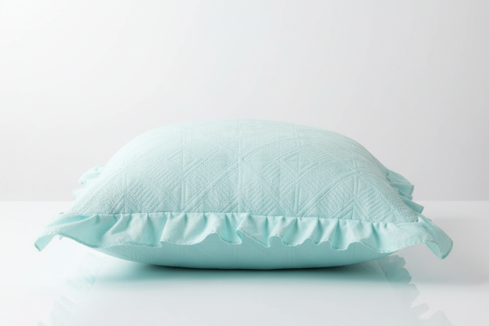 The bedcover features a geometric embossed pattern that adds texture and sophistication, while the frilled edges bring a soft, romantic touch. Made from premium microfiber fabric, it is lightweight, breathable, and durable – ideal for year-round comfort.