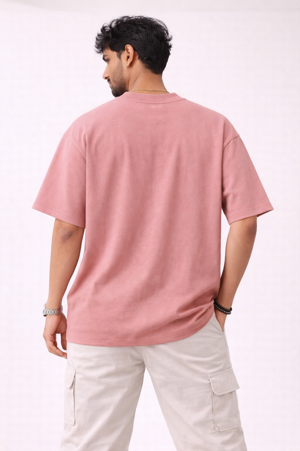 Rose Pink Oversized T-Shirt | 240 GSM Premium French Terry Cotton | Streetwear Drop Shoulder Tee