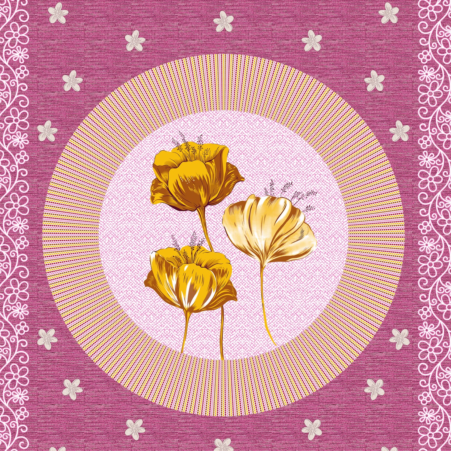 Bring elegance and comfort to your bedroom with this premium Single Cot Bedsheet, crafted from 100% cotton with a 150 thread count (TC) for a soft and breathable feel. Featuring a vibrant pink base, the bedsheet is adorned with beautiful yellow floral motifs in the center and delicate white flower accents throughout. A stylish floral lace-like border adds a touch of sophistication.