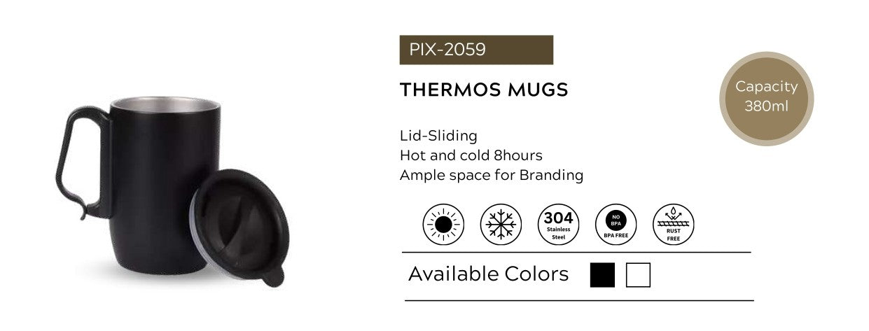 Stainless Steel Thermos Mug – 380 ml Sliding Lid Coffee Mug | Hot & Cold for 8 Hours